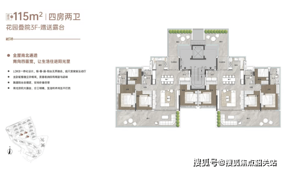 主力户型中,首层约115㎡的产品通过赠送双花园,实现了约262%的空间使用率。
