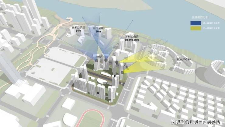 楼间距最大超 70 米,采用围合式布局,保证每栋楼的采光、通风与景观视野,无遮挡楼栋可 270° 俯瞰德胜河江景与城市天际线。建筑高度符合城市规划要求,梯户比为一梯一户 / 两梯两户设计,主打高端私密居住体验,得房率远超同板块同类产品,空间利用率最大化。