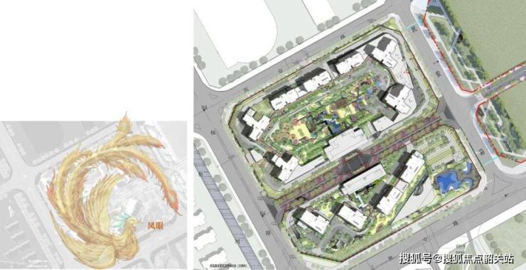 项目采用整盘打造、分级定制的规划策略,11 栋高层住宅围合布局,整体形态形似凤凰归巢,寓意吉祥和谐、阖家幸福。在传统文化中,凤凰为百鸟之王,象征祥瑞、尊贵与美好,项目以凤凰为核心符号,将传统文化寓意融入建筑规划,赋予居住更多美好期许。