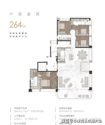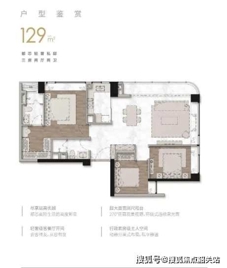 264㎡大平层:双主套三卫+270°环幕阳台,部分单位直望白云山;