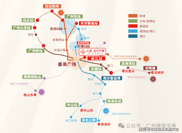 项目楼下就是3号线东延段傍江站C出口,而且小区电梯可以直达3号线无需担心风吹日晒,1站就可以到番禺广场,这里作为城市交通要塞,3-17-18-22号线这里都有设站点,换乘18号线,2站到万博商圈、3站琶洲,出行非常方便。