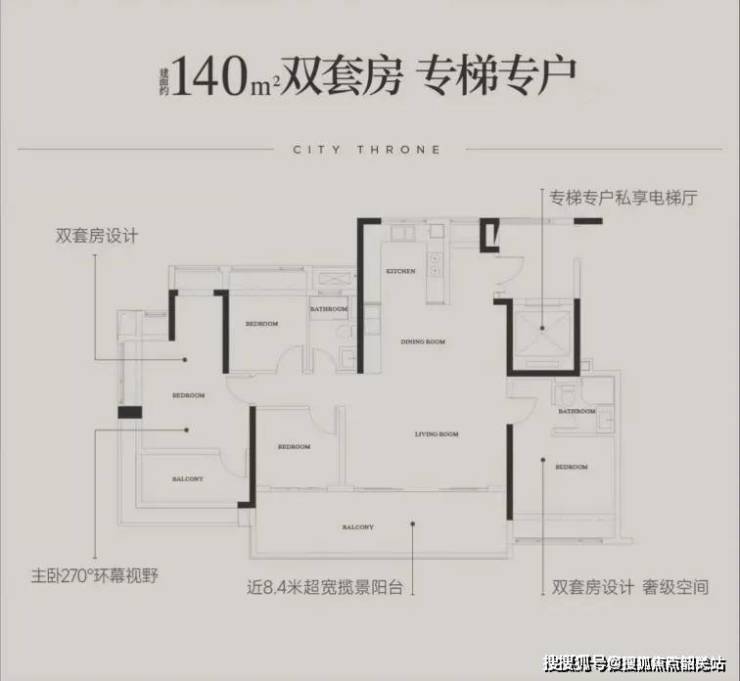 项目总建筑面积约15万平方米,容积率仅2.8,是天河芯罕见的低密社区。建筑采用现代简约风格,外立面以玻璃幕墙+铝板为主,搭配270°环幕观景阳台,最大化引景入室。