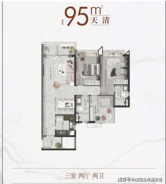 一、建面约95㎡三房两厅两卫(刚需首选)