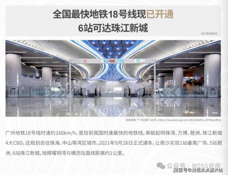 旭辉曜玥湾拥有完善的五维立体交通网络,实现粤港澳大湾区1小时生活圈。地铁方面,项目直线距离地铁18号线横沥站约1公里,地铁18号线是国内首条时速160公里的地铁快线,1站可达番禺广场,6站直达广州珠江新城,实现与广州市中心的快速通勤。地铁22号线正在建设中,未来将连接深莞地区;地铁18号线未来也将规划连接中山、珠海,实现湾区地铁通达。