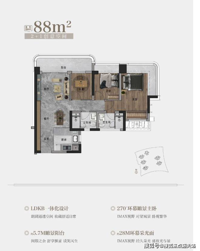 这些户型都有宽约 1.5 米、长约 5.5 - 6.4 米不等的长阳台,还有 L 形 270° 视角大飘窗,户户都有,而且互不遮挡,这在很多楼盘可做不到。就说最小的 88 平户型,都有 5.7 米大阳台和 5 米左右 L 形大飘窗。有人觉得 88 平户型书房小,其实看看尺寸,纵深约 2.5 米,宽约 2.1 米,当儿童房的话,靠左侧墙放 1.2 米床,阳台一端还能设计书桌和吊柜,还有 0.9 米宽过道,也不显得挤。而且二期 3 梯 6 户,每户都做到 4 开间同一朝向,像 105 平、122 平、143 平 4 开间朝南,朝南房间占比高达 90%。交标也提升了,大门是双面门,质感好,每个户型都带全屋中央空调,用的还是国内外高端家装品牌。以前被诟病的外立面也改了,融入 “云山珠水” 人文理念,用玻璃幕墙、铝板和香槟金线条,打造公建化立面,270° 转角玻璃延伸视野,妥妥的 “科学城汇悦台” 感觉。