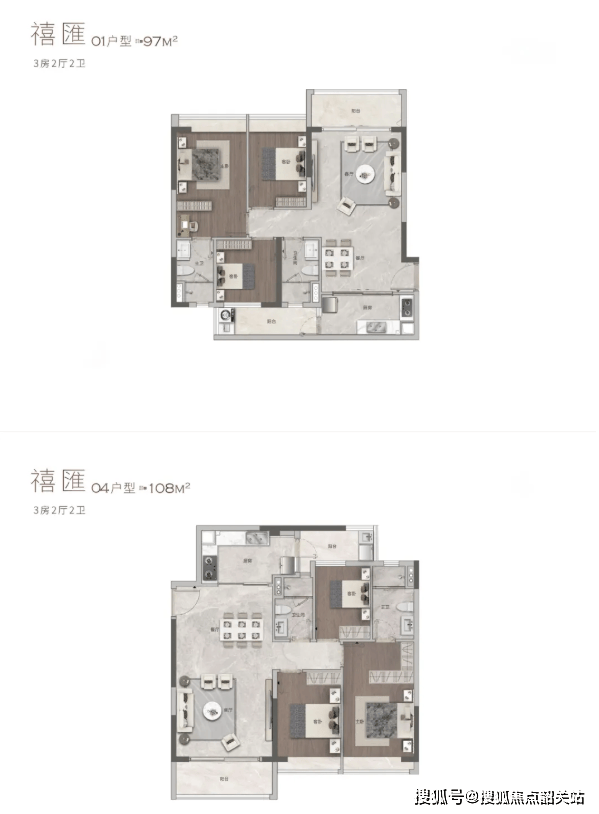 97㎡与108㎡的户型,则更适合三口之家或二胎家庭。三房两厅两卫的格局,既保证了每个家庭成员的独立空间,又兼顾了家庭互动的公共区域。主卧套房设计,配备独立卫生间与衣帽间,提升了居住的私密性与尊贵感;次卧与书房灵活可变,可根据实际需求进行调整。这类户型实用率高,功能齐全,能够满足家庭成长的不同阶段需求。
