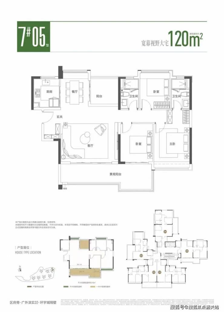 120㎡四房户型,定位为改善型户型,空间开阔通透,南北对流,满足多人口家庭的居住需求。该户型阳台进深可达2.7米,开间超7.2米,打造“MAX巨幕阳台”,景观面堪比广州顶豪户型,可实现种花、煮茶、读书、观景等多元生活场景,将自然美景与生活烟火完美融合;四开间朝南,采光充足,视野开阔,每一个房间都能享受充足的阳光与良好的景观视野;动静分区明确,主卧配备独立卫生间与衣帽间,彰显尊贵感与私密性,次卧空间宽敞,可作为儿童房、老人房或书房,满足家庭多元需求;空间利用率高,无浪费面积,每一寸空间都能发挥其价值。