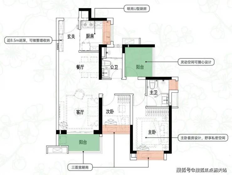 建面约84㎡3空间2厅2卫|得房率约93.5%