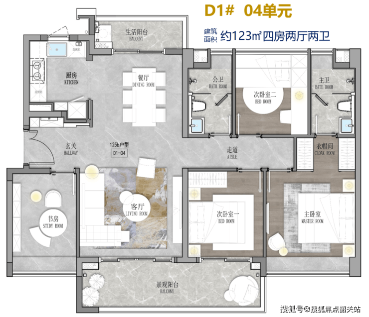 峻銮住宅以低密度、高舒适度为核心,采用南北组团规划,S型布局确保楼间距充足,全南向户型设计最大化采光与通风。首推北组团B1#、B2#楼,均为两梯四户设计,高度约24-25层,总计约186套住宅。户型面积覆盖95-162㎡,兼顾家庭刚需与高端改善需求。