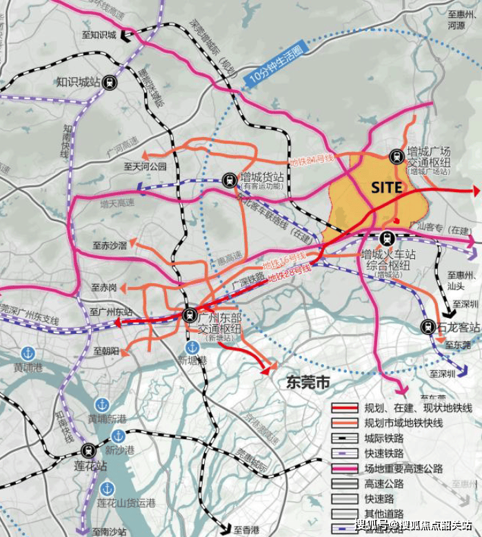 【轨道交通】穗莞深-新白广城际、北至白云机场、广州北站,南达深圳宝安机场,西连佛山西站、广州东站,通达大湾区各核心城市。