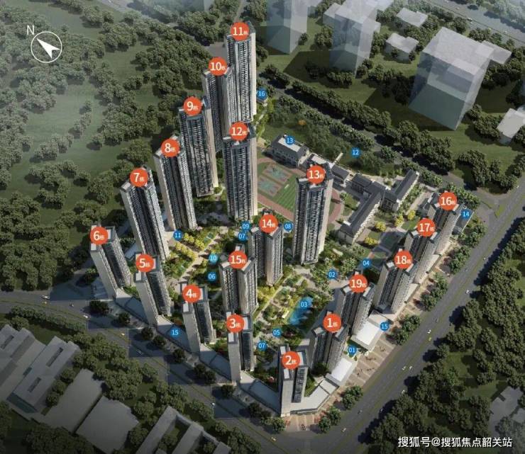 建筑采用点式布局排布,减少楼栋数量,提高楼间距,保证每一户的通风采光;