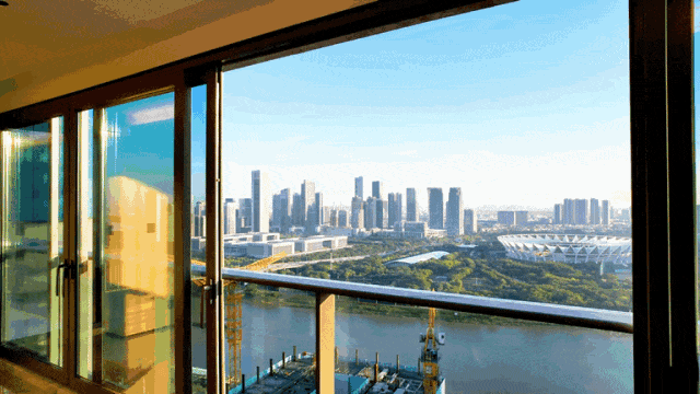 保利秀台天珺坐落在东平河畔,拥有无可比拟的城市景观资源。从样板间南向望去,可以看到佛山新城那气势磅礴的千亿地标天际线;北向则无遮挡地将百花广场、佛山电视塔以及广州塔等城市地标尽收眼底。这种南北双面的“城市极核观感”让每一个住户都能成为这座城市的见证者与参与者。