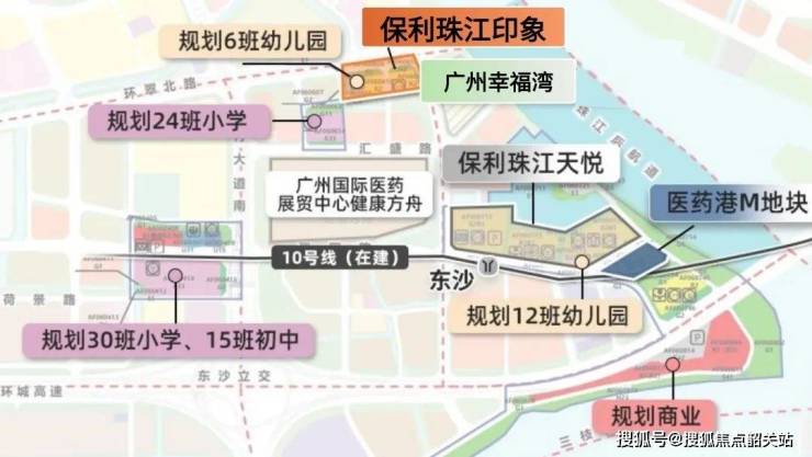 立体交通网络,出行无忧:保利珠江印象距离地铁10号线东沙站约700米(预计2025年开通),通过环城高速、东新高速等主要道路可快速抵达城市的各个角落。此外,项目临近在建中的东沙隧道、丫髻沙大桥等重要交通节点,使得自驾出行同样便捷。值得一提的是,区域内还规划有水上巴士码头,为居民提供了独一无二的水上交通体验。