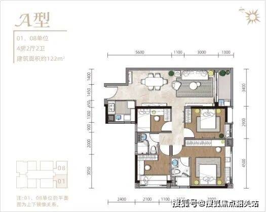 ### A户型:建面约122㎡ 4房2厅2卫