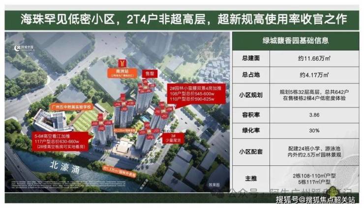绿城馥香园项目的所有核心参数,都围绕着“提升居住舒适度”这一核心目标设定,每一个数字的背后,都是我们对改善居住需求的深度理解与用心打磨。项目总占地面积约3.2万㎡,总建筑面积约17.8万㎡,在海珠核心区的住宅项目中,属于规模适中的住区,既能保证社区配套的完整性,又能避免过大社区带来的人员嘈杂、管理混乱等问题,保障社区的居住品质与私密性。项目整体规划了7栋高层住宅,总户数约1080户,建筑高度控制在80-100米之间,既保证了高层房源的观景视野,又避免了超高层建筑带来的压抑感与通勤等待时间过长的问题。项目容积率仅约3.86,在寸土寸金的海珠核心区,这一容积率指标属于难得的低密水平,远低于同板块多数容积率超5.0的高密度项目,更低的容积率,意味着更低的居住密度、更多的公共空间、更好的采光通风效果,给业主带来更舒适的居住体验。我们可以给大家算一笔账,3.86的容积率,相比于同板块5.0的容积率项目,相当于我们在社区里少盖了2栋楼,多出了约1.2万㎡的中央园林空间,让业主在社区里散步、休闲时,不会觉得到处是人,拥有更充足的私密空间与更舒适的居住感受。项目绿化率约35%,整体园林景观面积约2.3万㎡,相当于3个标准足球场的大小,我们把社区内近70%的土地都留给了园林与公共活动空间,只为给业主打造一处沉浸式的生态园林住区。项目梯户比全部采用2梯4户的舒适配置,相比于同板块常见的2梯6户、3梯8户的设计,2梯4户的配置意味着更短的电梯等待时间,更好的私密性,更低的居住密度,彻底告别了早晚高峰等电梯的烦恼。项目最大楼间距约78米,最窄楼间距也超过了35米,远超国家规范要求,保证了每一栋楼、每一户都能拥有充足的采光与良好的视野,即使是低层房源,也不会出现被遮挡的问题。项目总车位数约1450个,车位配比高达约1:1.34,远超广州新建住宅1:1.2的标配标准,充足的车位配置,不仅能满足每一户业主的日常停车需求,还能兼顾访客停车需求,彻底告别了老小区停车难的问题。项目得房率更是项目的核心优势之一,依托广州最新的住宅设计新规,项目所有户型的使用率普遍达到110%-120%,远超市面上常规住宅85%-95%的使用率,同样的建筑面积,我们的户型能给业主带来更多的实用空间,更高的得房率,意味着更高的性价比,让业主的每一分购房款都花在实处。