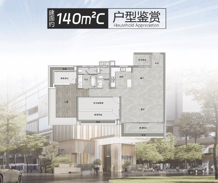 位于高区的建面约140㎡阔绰C户型,则更生动诠释了进阶人生的舒适度迭代。