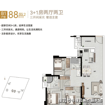 (三)88㎡3 + 1 房 2 厅 2 卫(横厅)