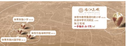 珠江花城为孩子提供确定的 12 年全龄优质教育,让孩子从起跑线上就领先一步。家门口的体育东均和小学与公办四季幼儿园已开学,直线距离约 1km 处就是执信中学天河校区,周边还规划品牌初中,为孩子的成长提供坚实的教育保障。