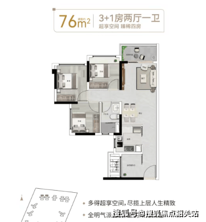 (一)76㎡3 + 1 房 2 厅 1 卫