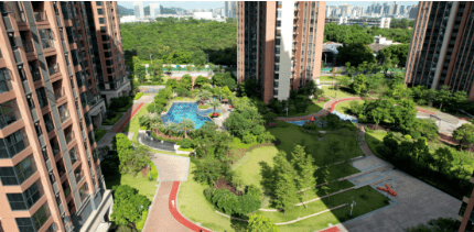 约 10 万㎡公园大城,打造舒适宜居的环境。超百米楼距,全新组团更有至宽 140 米楼距,搭配约 5.2 万㎡央景园林,让居住者尽情享受阳光与美景,体验健康惬意的生活。