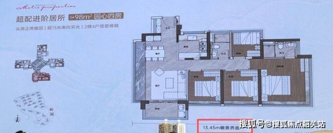 其中,98平做到了四开间朝南,南侧面宽有13.45米,只比118平的面宽少了10公分,尺度感非常不错。