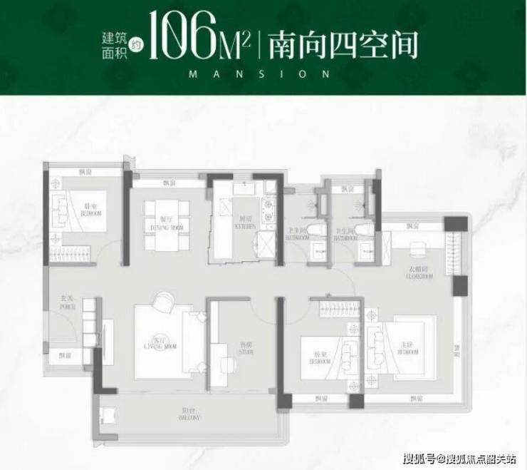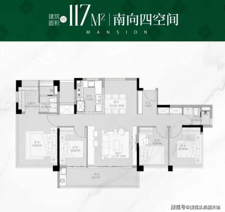 项目主推88-117㎡四房,设计突破传统,实现“同面积多一房”: