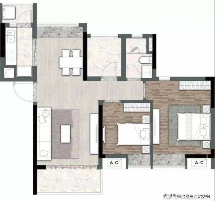 90㎡ 三房两厅:紧凑实用,适合年轻家庭或首次置业者。