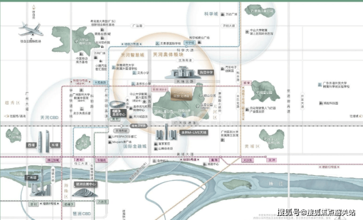 联投文津府坐落于天河区奥体板块,这一区域被誉为广州未来的“城市客厅”。它不仅仅是一个简单的地理坐标,更是广州城市发展战略中的关键一环。项目地处“珠江新城-金融城-科学城”黄金三角的中央位置,这种独特的区位布局,使得联投文津府能够同时享受三大核心CBD的资源辐射。