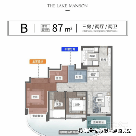 87㎡「三房阳光舱」:四开间朝南+近100%使用率,数字精英的首张湖居券