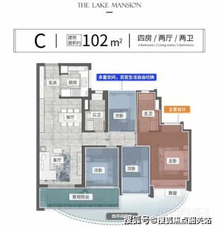 102㎡「四房成长盒」:6米双阳台+灵动空间,二孩家庭与茶室共存