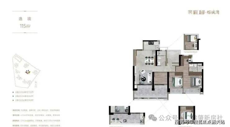 【户型】约85-98㎡瞰江望园三房;约138-165㎡全智能江景四房
