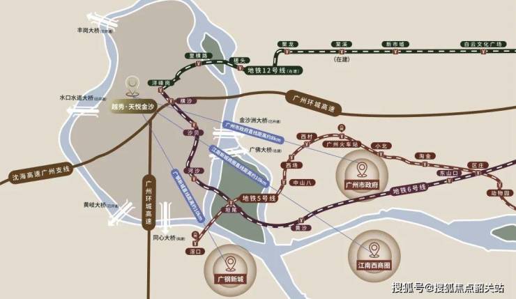 越秀·天悦金沙拥有八桥双地铁最强交通规划,距离广州地铁6号线、12号线始发站浔峰岗仅1公里左右。未来还将新增广佛大桥(已动工,预计2023年完工)及沉香岛大桥(拟建),大大缩短了前往白云、荔湾等中心区域的通勤时间。无论是上班出行还是周末出游,都变得更加轻松愉快。
