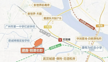 建鑫鹅潭名郡地理位置优越,位于白鹅潭板块,临近荔湾区政府,处于白鹅潭和滘口板块中间,尽享区域发展红利。在交通出行方面,项目与 11 号线石围塘站的步行距离约 800 米。11 号线作为广州首条市区大环线,串联起广州中心五区,与现有及未来的所有地铁线路实现换乘,堪称 “换乘之王”,能够高效虹吸全广州的优质资源,让业主轻松畅达城市各处。