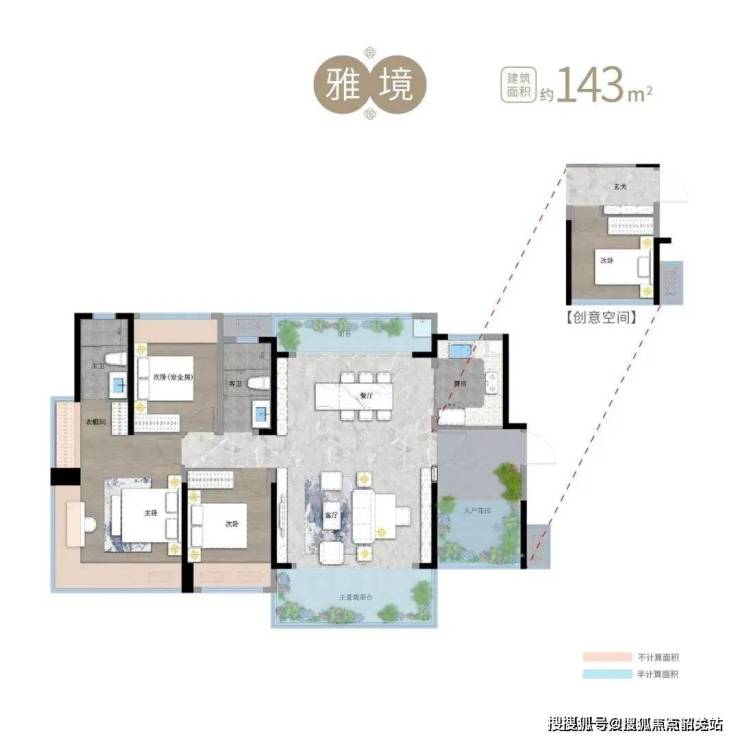 143㎡五房三卫:总价约970万,270°环幕视野,中西双厨配置