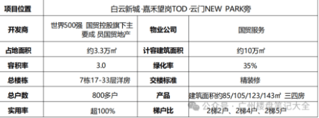 国贸云上作为白云嘉禾望岗TOD低密标杆,集国企品牌实力、轨交核心优势、低密宜居规划、高拓实用户型、全维商业配套于一体,核心价值覆盖刚需、改善、资产配置多重需求,是广州主城高性价比置业优选。总体来看,项目由国贸地产千亿国企匠造,资金稳健、品质可控,置业安全性拉满。从品牌实力来看,国企开发+严苛品控双重保障,交付与售后无后顾之忧;从区位择址来看,踞守嘉禾望岗商务核心区,享千亿产业红利与城市更新利好,地段价值持续攀升;从教育资源来看,自建12班幼儿园+周边优质中小学环伺,全龄优教一步到位;从交通网络来看,三轨交汇+地下直通车库+主干路网环绕,20分钟通达主城CBD,出行高效便捷;从生态环境来看,体育公园+滨水步道+社区园林,内外双园营造健康宜居氛围;从商业配套来看,全维商圈覆盖+山姆会员店进驻,繁华与宁静随心切换;从产品设计来看,超低容积率+超高使用率户型+全明通透布局,空间实用舒适,性价比冠绝片区。全方位优势叠加,使其成为白云主城自住改善的标杆之作。