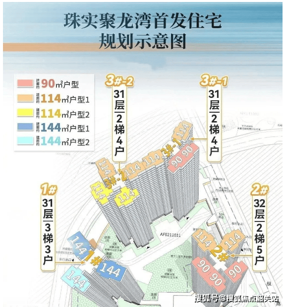 项目整体规划 4 栋高层住宅,总计约 460 套可售房源,楼栋梯户比分别为 1 栋 2T5、2 栋 2T4、1 栋 3T3,全部房源采用全南向设计,保障每一户都拥有充足的采光与通风效果,70% 的产品配备私梯入户或入户花园设计,兼顾居住私密性与归家仪式感。
