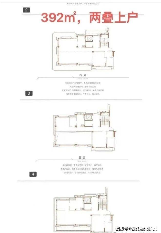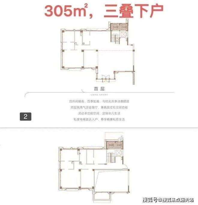下叠面积为305㎡,首首层花园面积区间约为233-517㎡,实用率238-355%;三叠户型最高可做到6房。