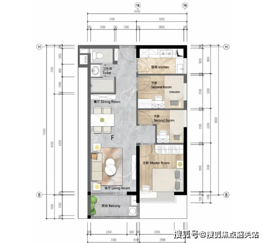 主卧带有南向阳台,算是一个卖点。当然,也可以根据实际需求,将阳台改成卧室一部分。