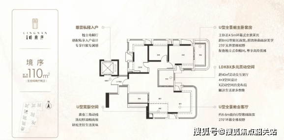 110㎡全景舱五空间两厅两卫:全南向设计,最大化采光面宽与空间感。