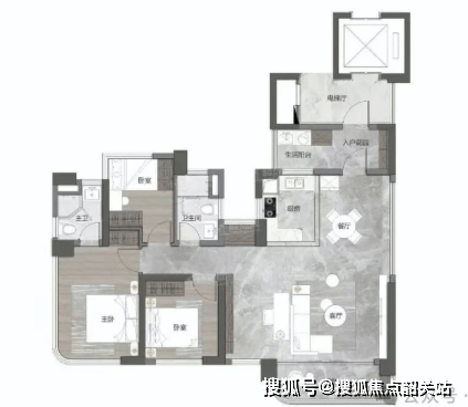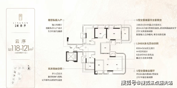 118-121㎡全景舱五空间两厅三卫:配备私梯入户,尊崇归家专属感。