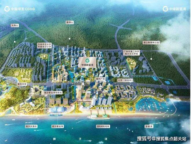 中绿蔚蓝湾,坐落在广州南沙湾的核心位置,紧邻国际邮轮母港,属于典型的滨海贵脉板块。这里被定位为粤港澳大湾区未来的海上门户和优质生活服务区,享受山、海、港、湾的多重稀缺资源,整体氛围安静又高端。