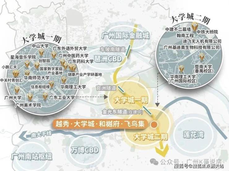 金光东隧道已经通车,5min直通大学城一期。同时也 让一二期资源得以链接、整合,真正融合成为一个整体。