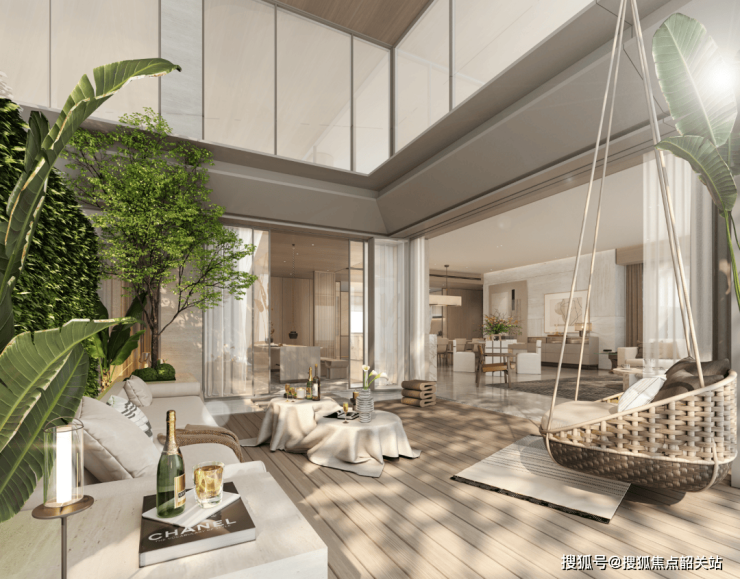 别墅及大平层采用精工施工,三至四层布局并辅以地下室设计,使空间功能最大化。景观光厅的内嵌设计,将阳光、风与绿意引入室内,形成上下两层自然互动空间,实现“宅中有园、园中有屋”的立体生活场景。同时,项目绿化系统可截留雨水、消减洪峰、降低PM2.5浓度,并显著减轻城市热岛效应,实现生态与生活的高度融合。