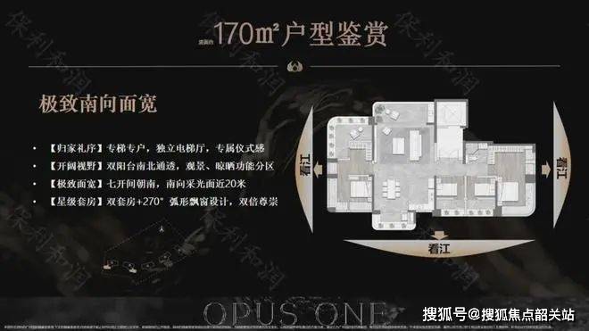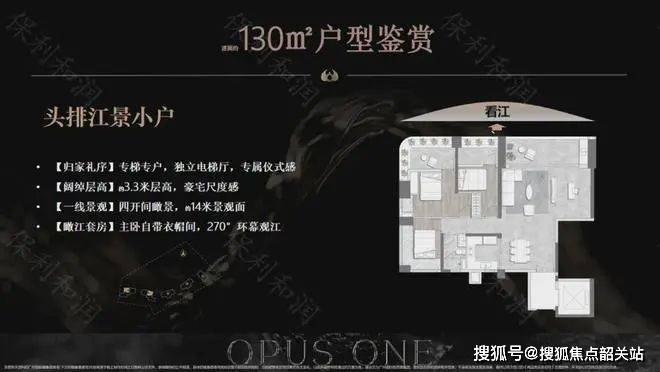 江景豪宅:独占约700米江岸线,纯一线江景配置,住宅整体抬高约14米,进一步与港湾融合,享受三江汇流所带来的最大景观面。