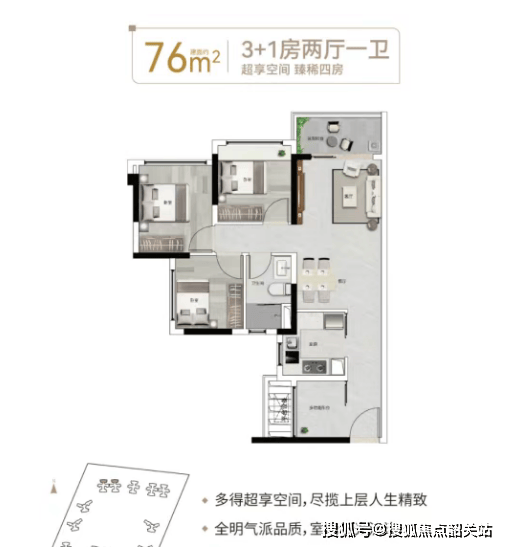 (一)76㎡3+1房2厅1卫:天河稀缺小户型,低总价上车首选