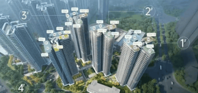 建筑采用“蝶式”布局,北地块整体抬高约11.2米,住宅起始层相当于普通楼盘的4楼,既提升了私密性,也改善了通风和视野。外立面走现代简约风,低饱和色调搭配大面玻璃与水平线条,近看还能发现岭南元素的细节处理,比如入户门庭融入了院落式归家动线,整体气质沉稳又不失温度。