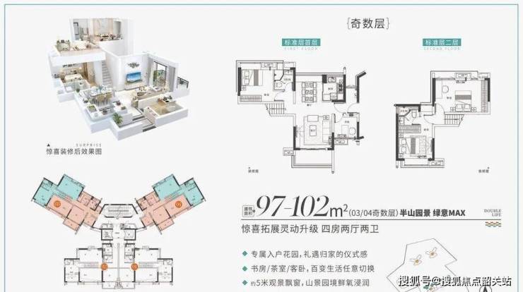 项目属于全南向户型,93-117㎡复式洋房,双层景观,使用率超100%, 满足有高度、有追求的客户,还独享大型坡地园林,依山瞰湖,是增城少有的城央地铁口半山精品豪宅。