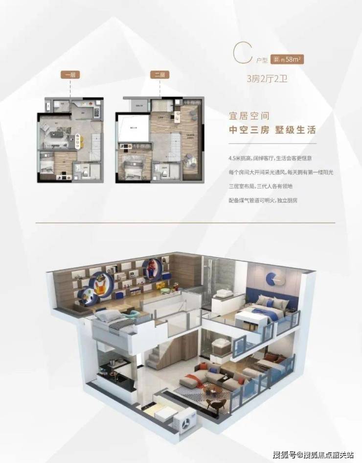 华新方圆333的产品户型多样,从33m²到58m²不等,均为复式设计,配备大部分家电,精装现楼交付。这些户型摒弃传统单过道,采用双环通走廊,确保每一户都有良好的通风和采光条件。特别是58m²户型,以其宽敞的空间布局和高品质装修,成为了追求舒适生活的首选。