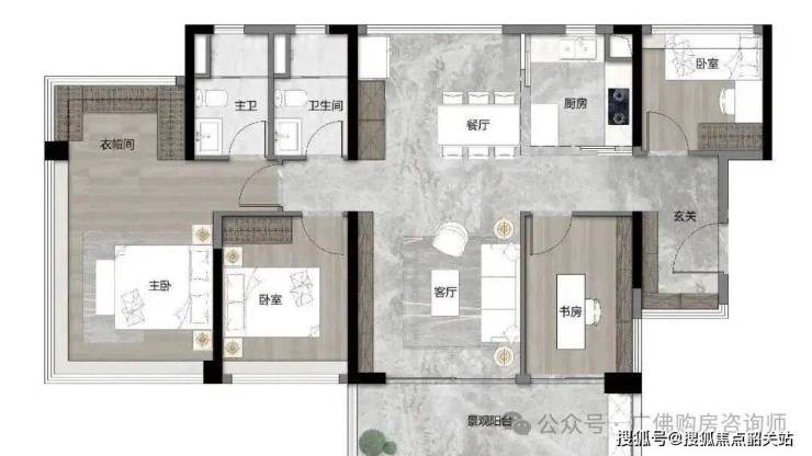建面118平A户型四房,同样是南北对流设计,和105平户型有点像,但是该户型做到了南北双阳台,会更加完美实用。