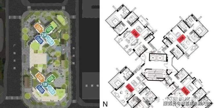 绿城玉海棠占地面积并不大,只有两栋住宅,都是以四房改善户型为主,整个项目的定位,还是偏向高端改善的,分别有105、118、138m²以及顶复200m²的产品,起步户型比番禺广场其他项目更加纯粹,而且使用率更加高。